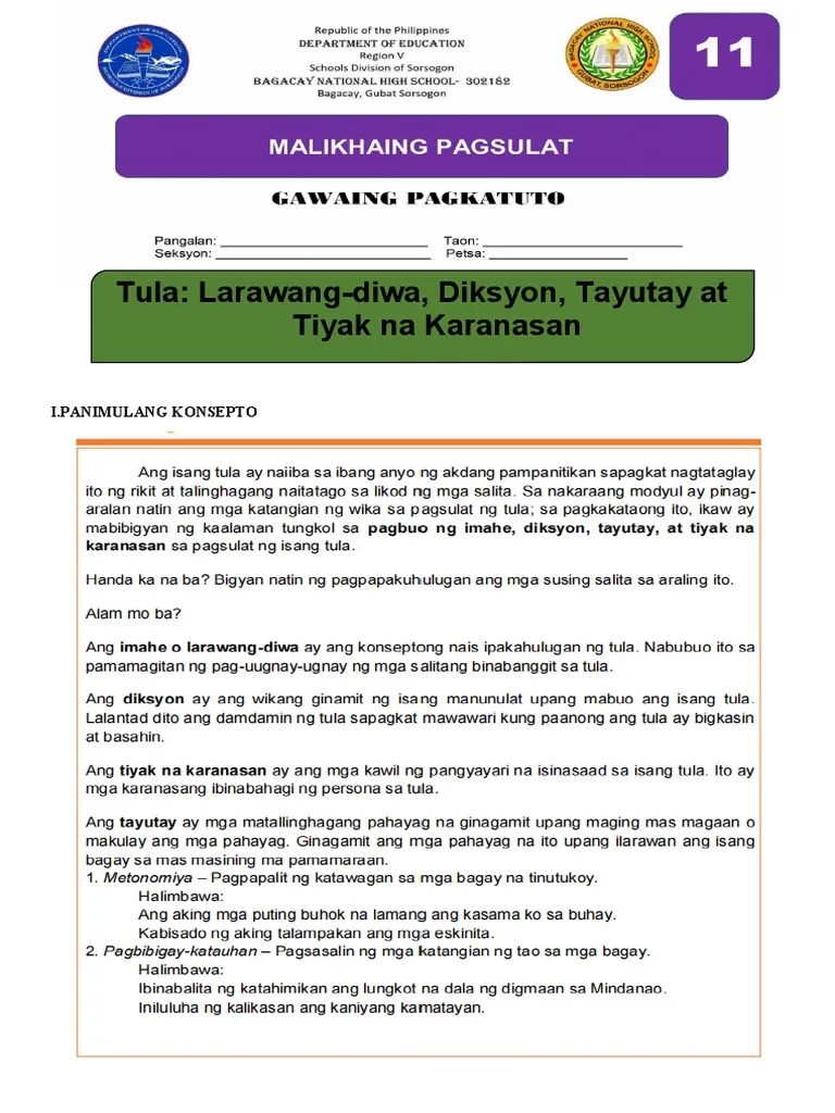 Sa ingles, ito ay tinatawag na imagery. Pumula sa dugo ang kalabang puksa. Mga tula at tilamsik ng diwa by francisco soc rodrigo, 1985, f.s. Ito ay binubuo ng iba't ibang element na kinabibilangan ng larawang diwa na kung saan isa ito sa nagbibigay ng. Ito ay maaaring parirala, …